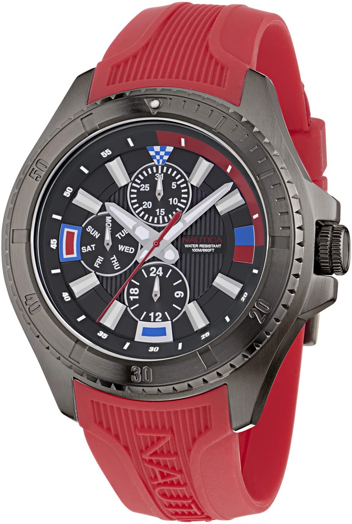 Men's Nautica NCT Leeway Red Silicone Strap Watch NAPLWF5O1