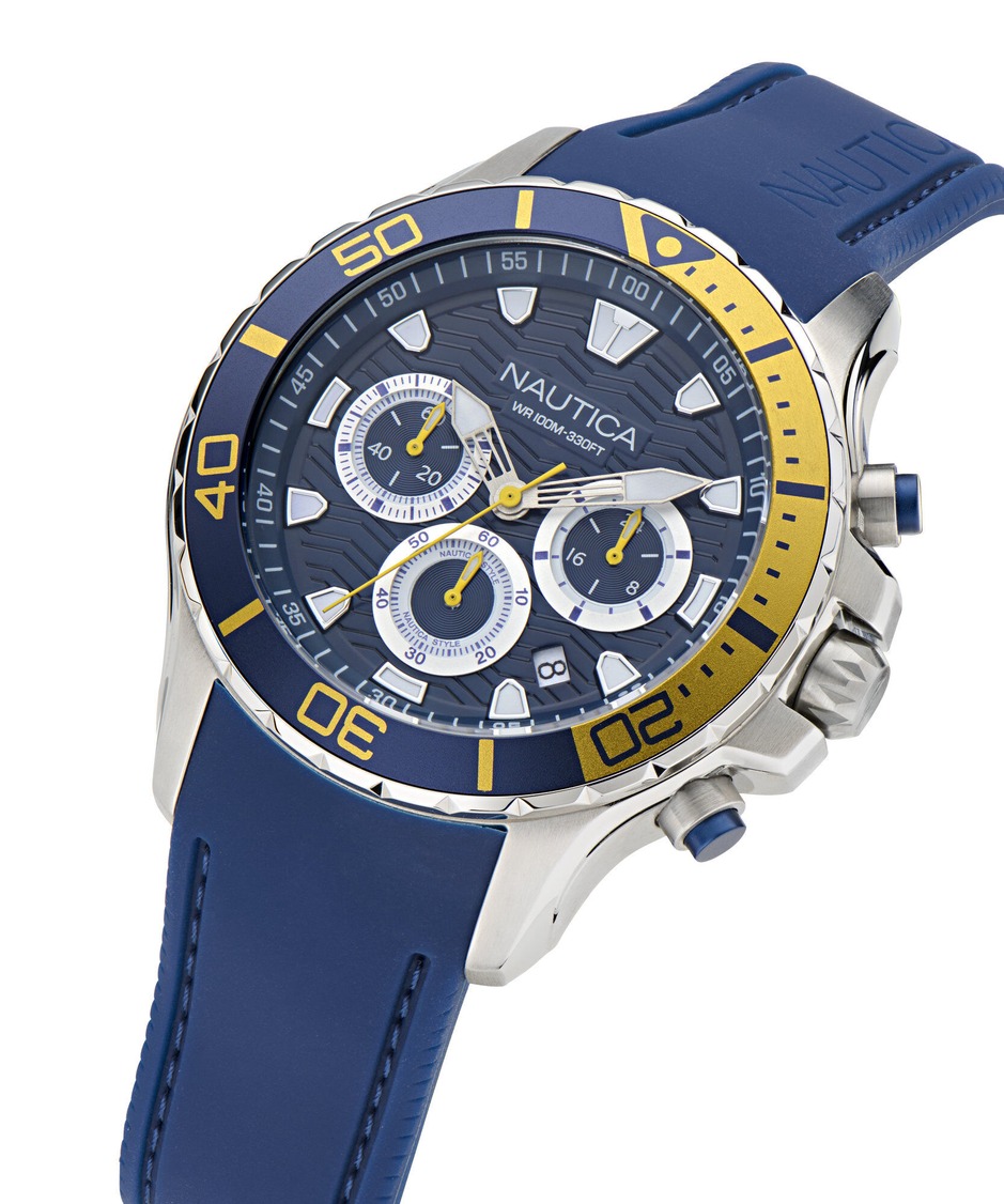 • Men's Nautica Sporty NST Chronograph Blue Silicone Strap Watch NAPNSS501