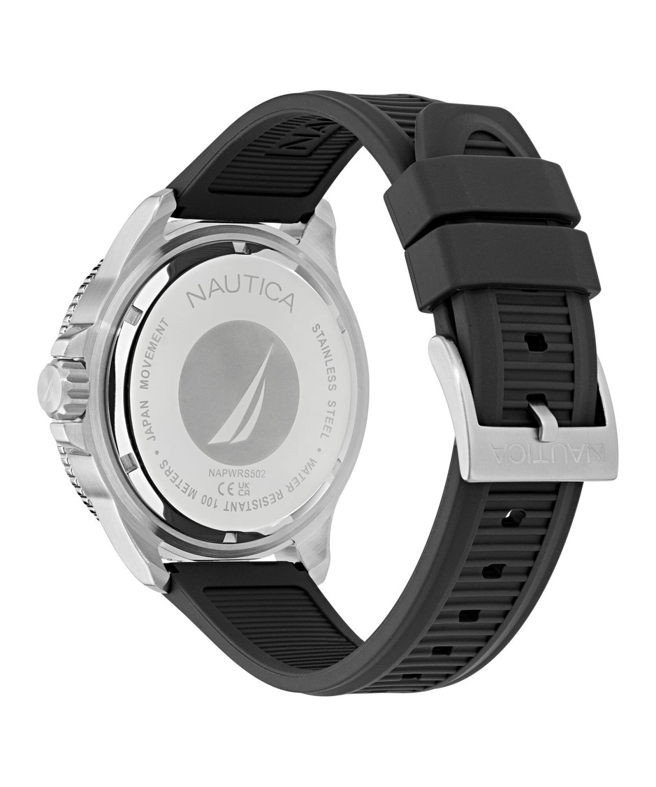 • Men's Nautica NCT Windrose Black Silicone Strap Watch NAPWRS502