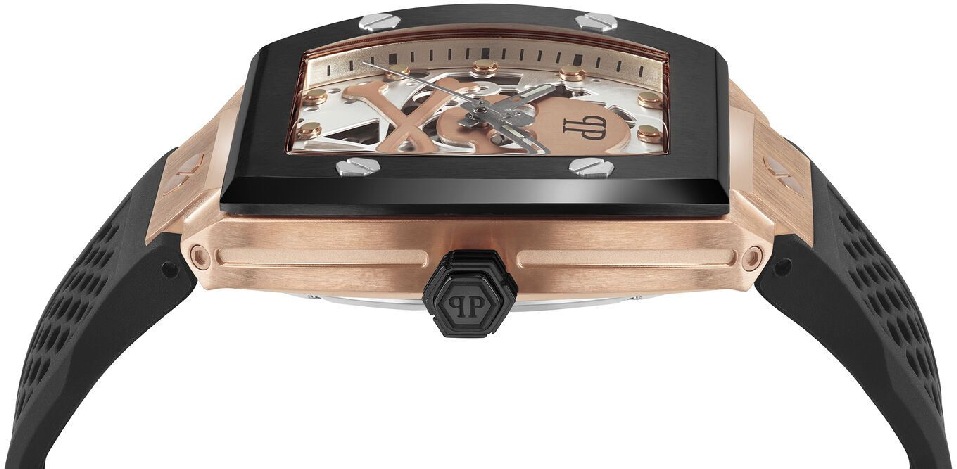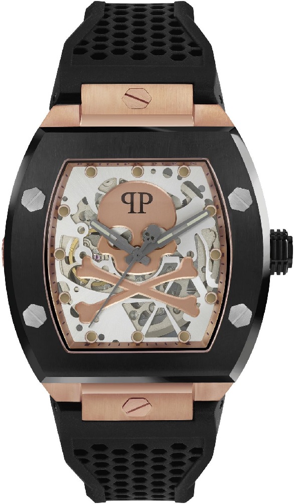• Men's Philipp Plein The Skull Automatic Silicone Strap Watch PWBAA0121