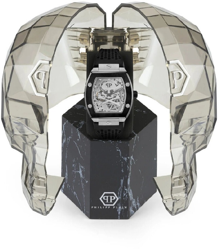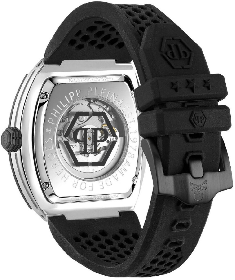 • Men's Philipp Plein The Skull Automatic Silicone Strap Watch PWBAA2023
