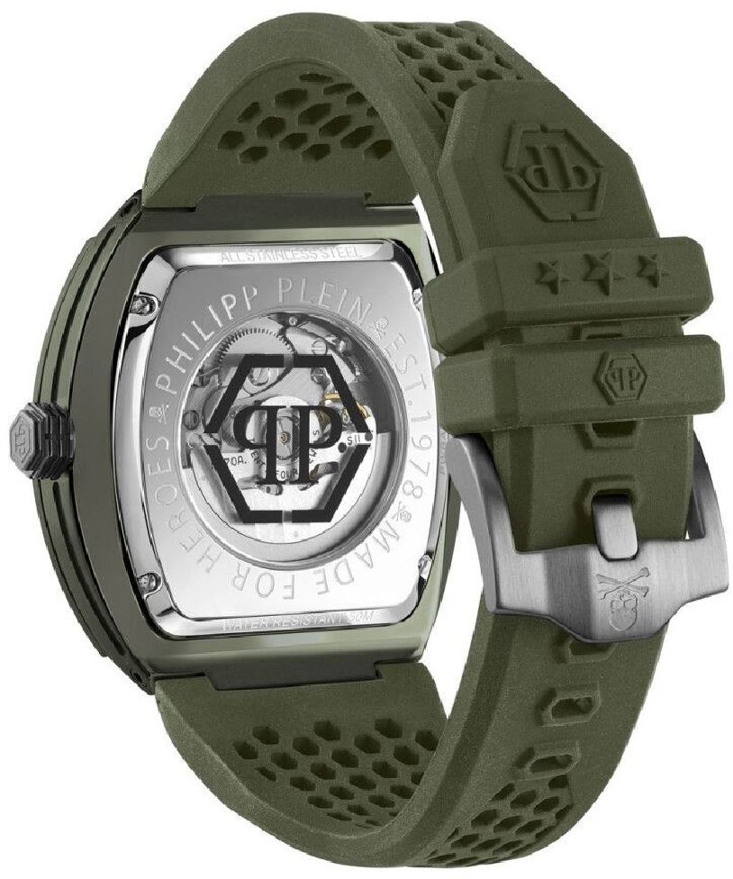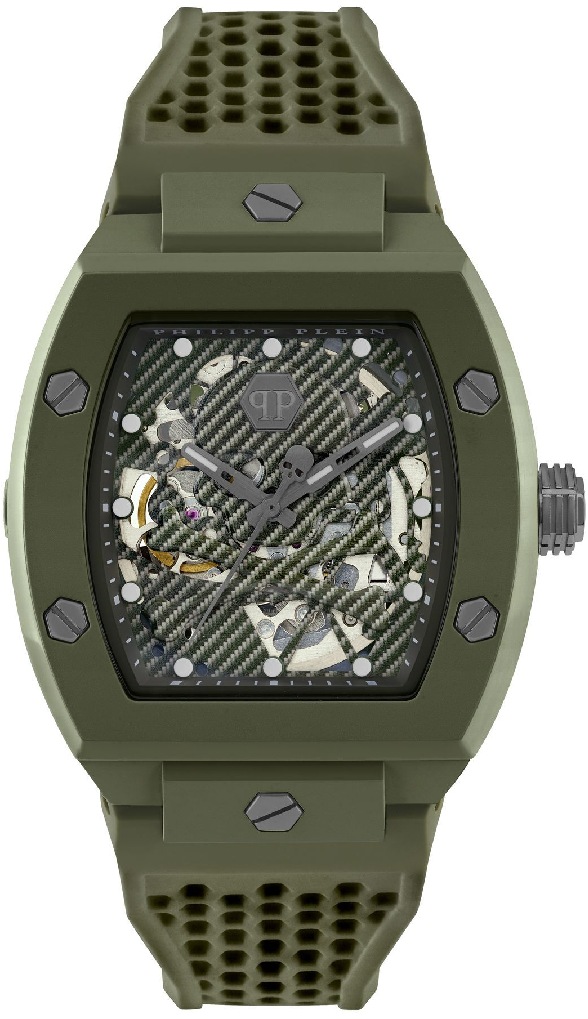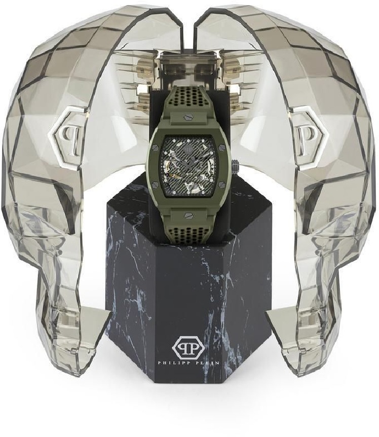 • Men's Philipp Plein The Skeleton Automatic Ecoceramic Green Watch PWVBA0223