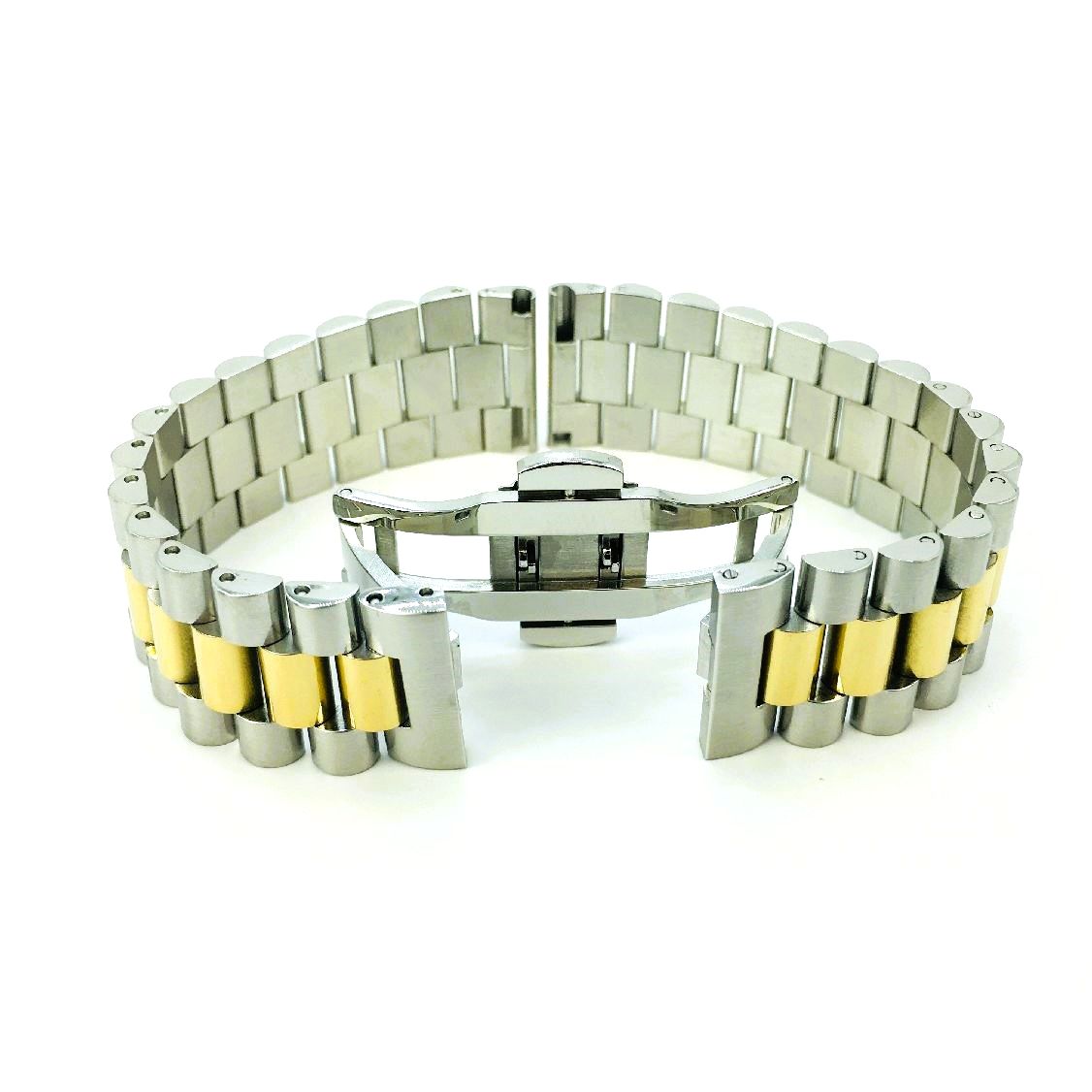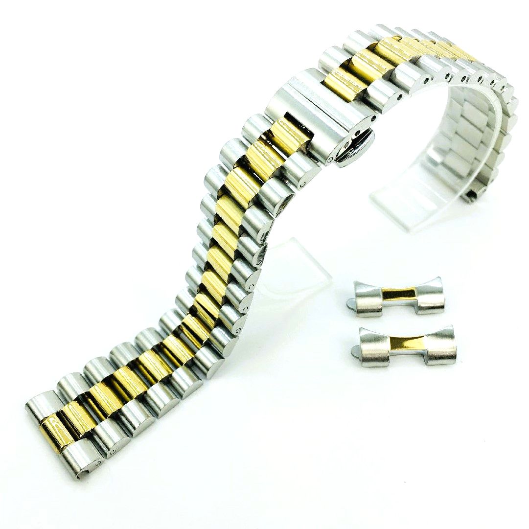 Raymond Weil Compatible Two Tone Metal Steel President Style Replacement Quick Release and Curved End Watch Band #7055