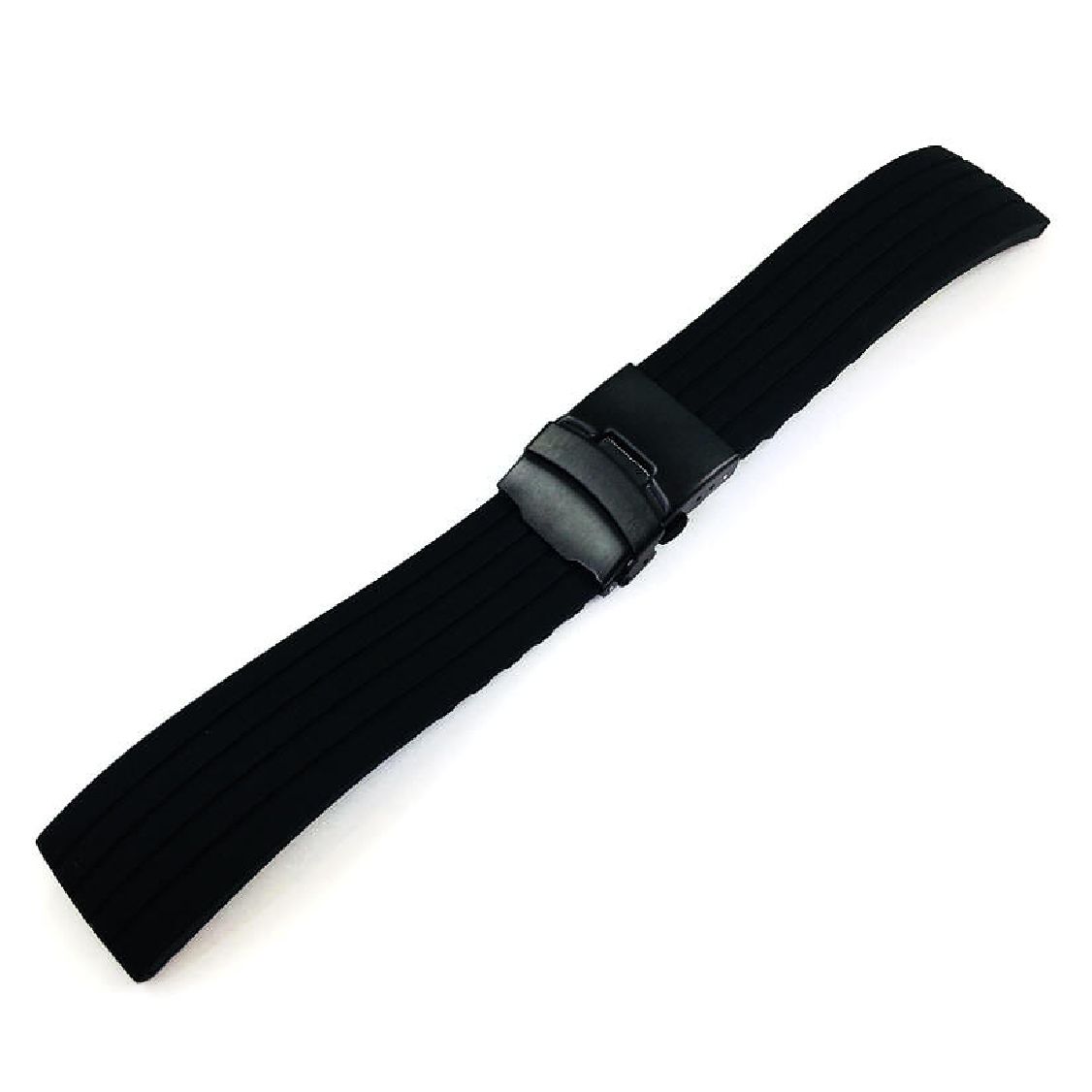 - Style: Standard silicone strap with double locking Black steel buckle