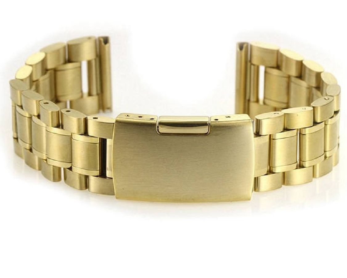 Seiko Compatible Gold Tone Steel Metal Bracelet Replacement Watch Band Strap Push Button Clasp #5017