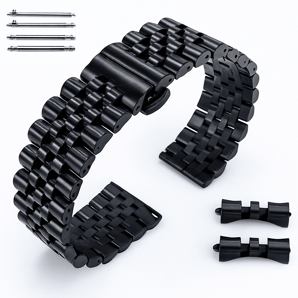 Seiko Compatible Black Metal Steel Jubilee Style Replacement Quick Release and Curved End Watch Band #7032
