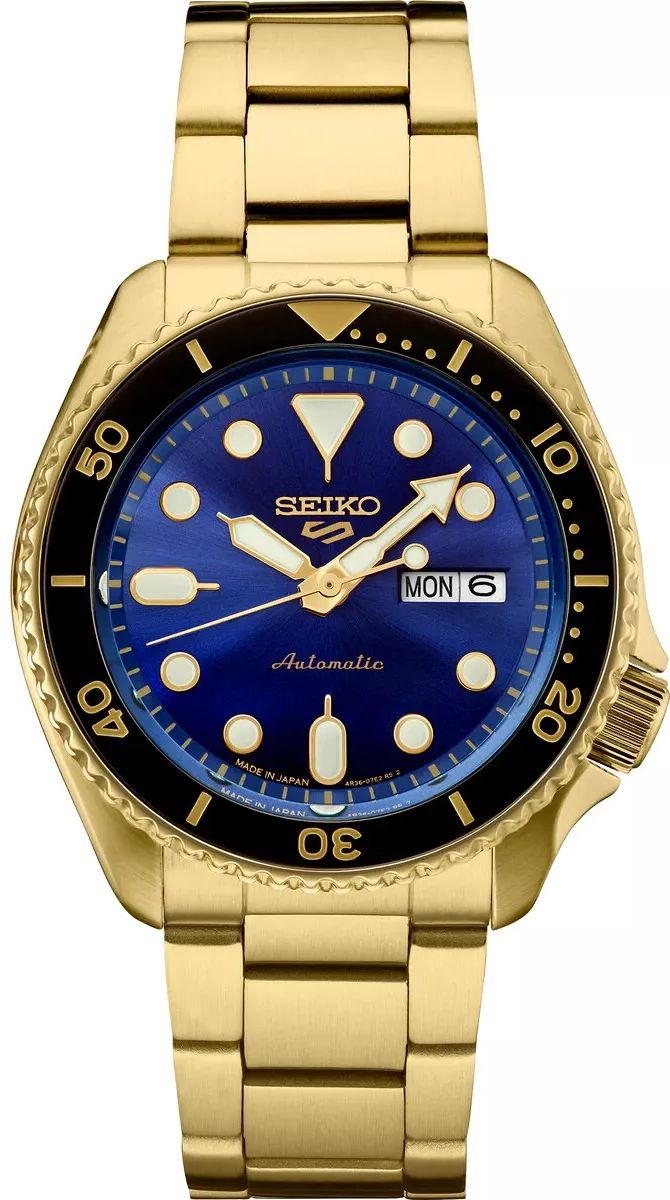The Seiko SRPK20 is a U.S.?only Special Creation from the 5 Sports line, merging upscale gold-tone aesthetics with a vivid sapphire-blue dial and robust automatic performance. Featuring Seiko's in-house 4R36 movement, it's a bold statement piece that's also solid and dependable.