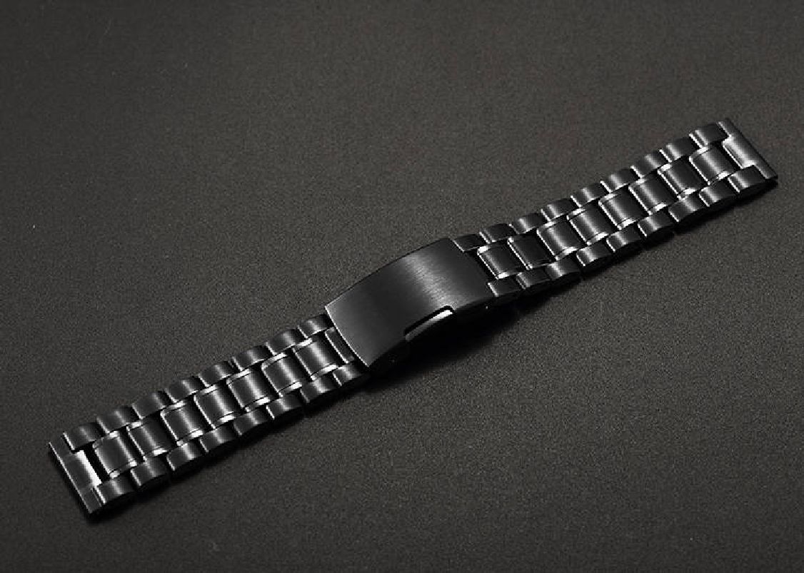 Steel Metal Bracelet Replacement Watch Band Strap PVD Black Push Button Clasp #5016