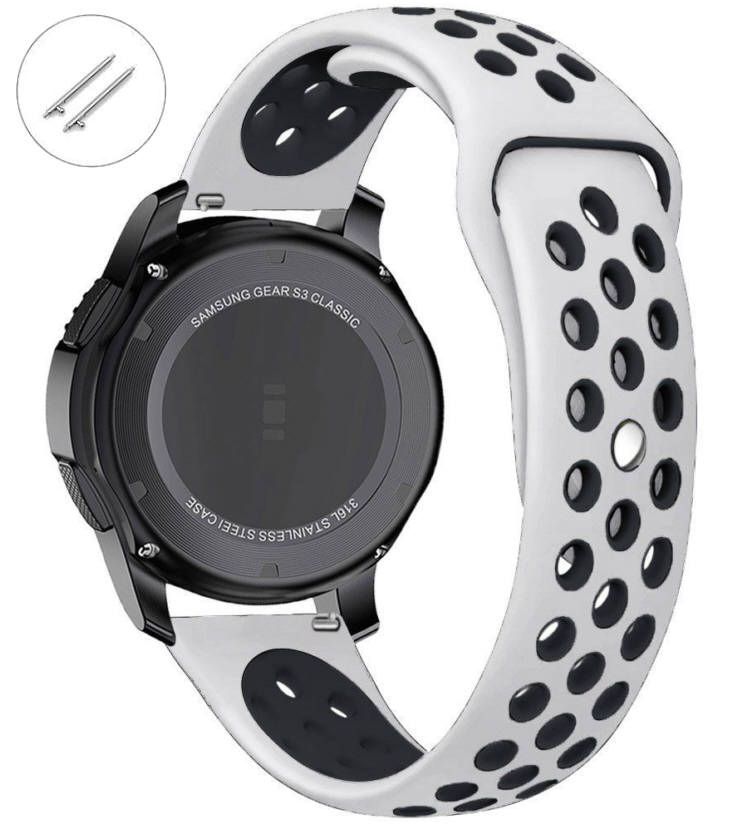 STUHRLING Compatible White & Black Silicone Replacement Watch Band Strap Quick Release Pins #4081