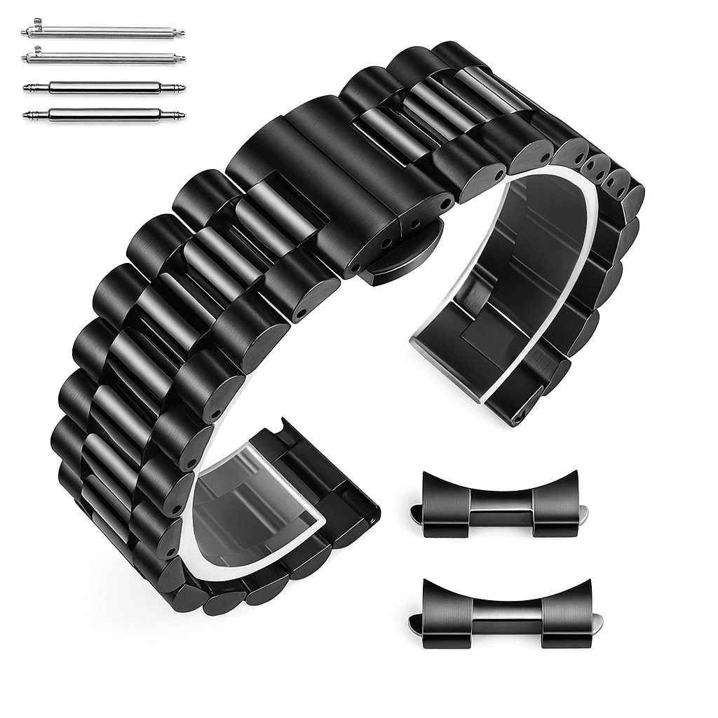 Tag Heuer Compatible Black Metal Steel President Style Replacement Quick Release and Curved End Watch Band #7052