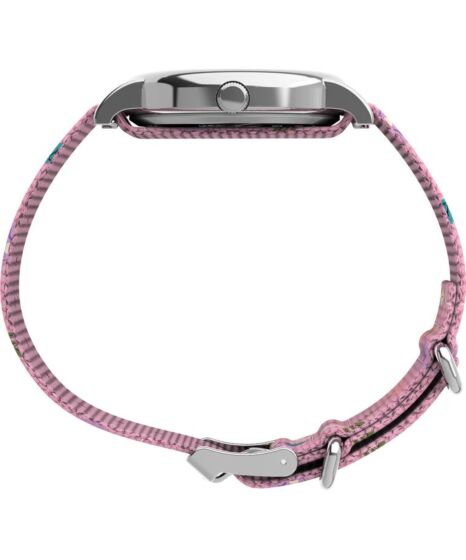 This Timex watch features a reliable quartz analog movement, a playful Peanuts floral dial with Snoopy motif and INDIGLO light up watch dial for easy reading in low light.