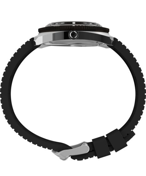 This Timex watch features a reliable quartz analog movement with a clear black dial, unidirectional rotating bezel and date display for everyday use.