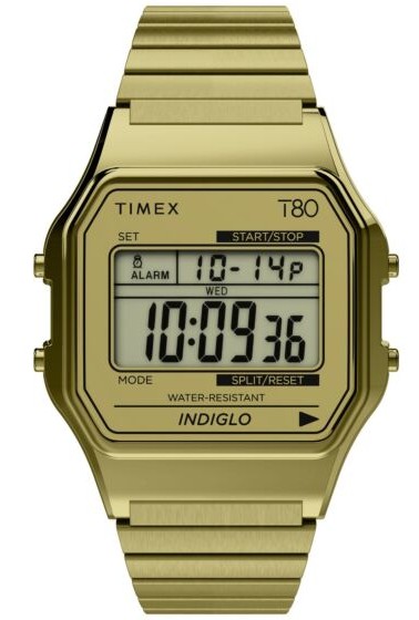 This Timex watch features a reliable quartz digital movement with a clear easy to read digital display, date, alarm and stopwatch in a retro inspired T80 design.