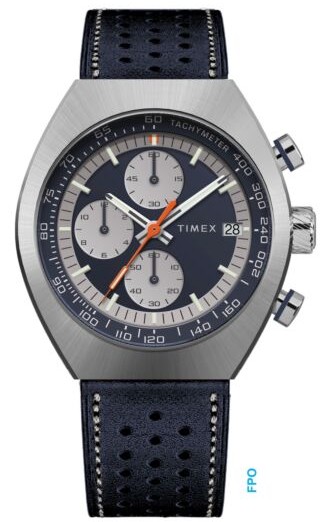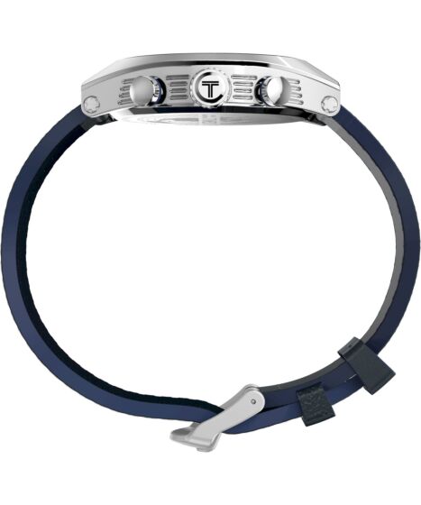 This Timex watch features a reliable quartz chronograph movement with stopwatch subdials, a date window and a striking blue dial in a classic tonneau shaped stainless steel case.