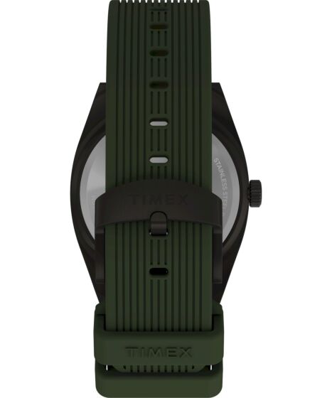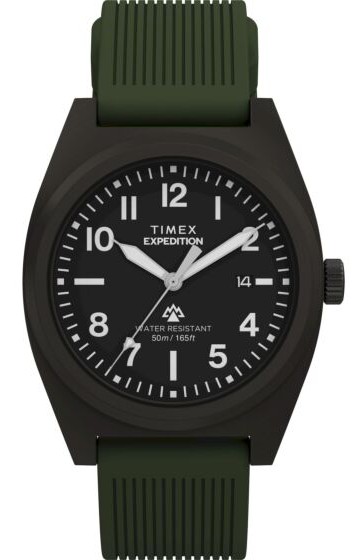 This Timex watch features a reliable quartz analog movement with a clear black dial, bold easy to read markers and a date window in a rugged outdoor ready design.