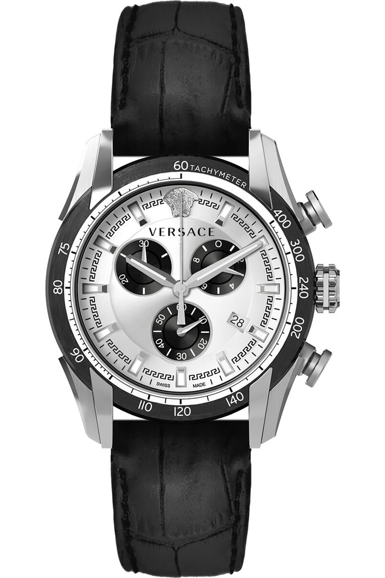 • Men's Versace V-Ray Chronograph Leather Strap Watch VE2I00821