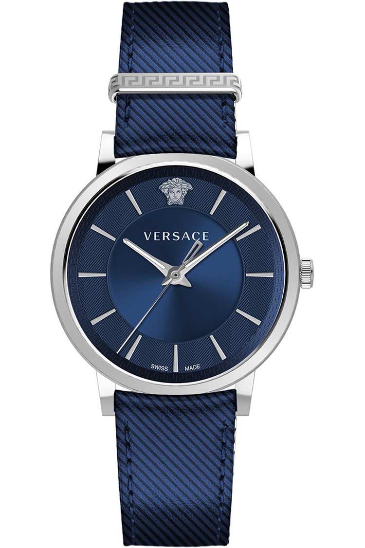 • Unisex Versace V-Circle Blue Leather Strap Watch VE5A00120