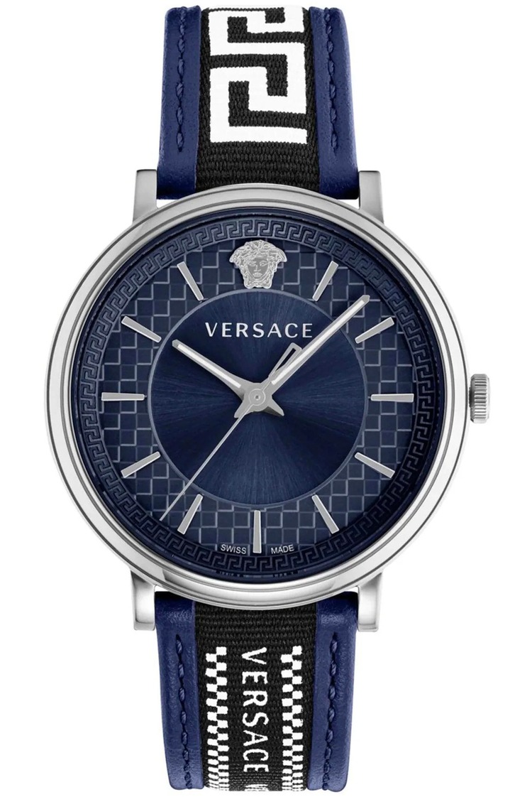 • Men's Versace V-Circle Leather Band Blue Watch VE5A01121