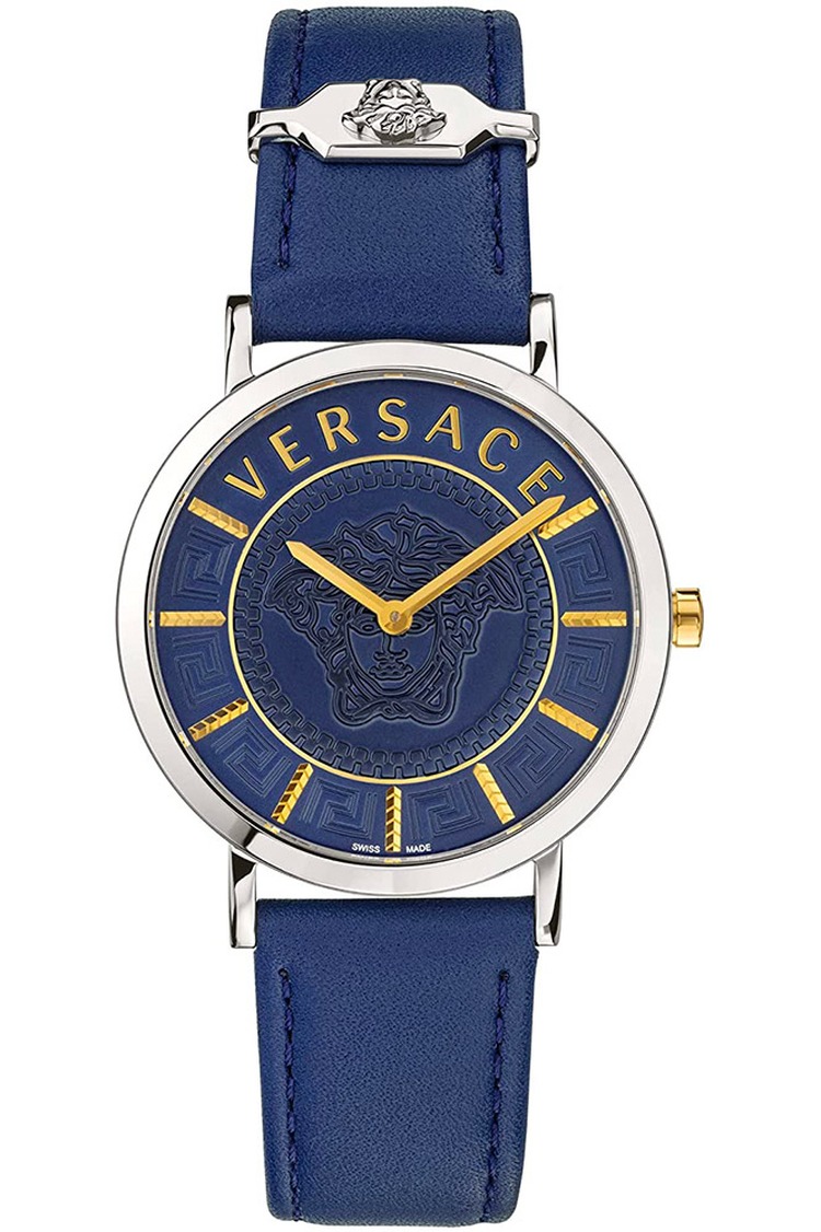 Women's Versace Essential Blue Leather Strap Watch VEK400121