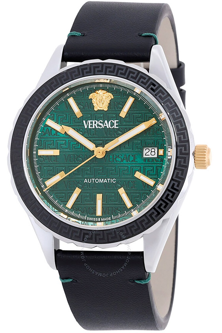 Men's Versace Automatic Black Leather Strap Watch VEQCA0124