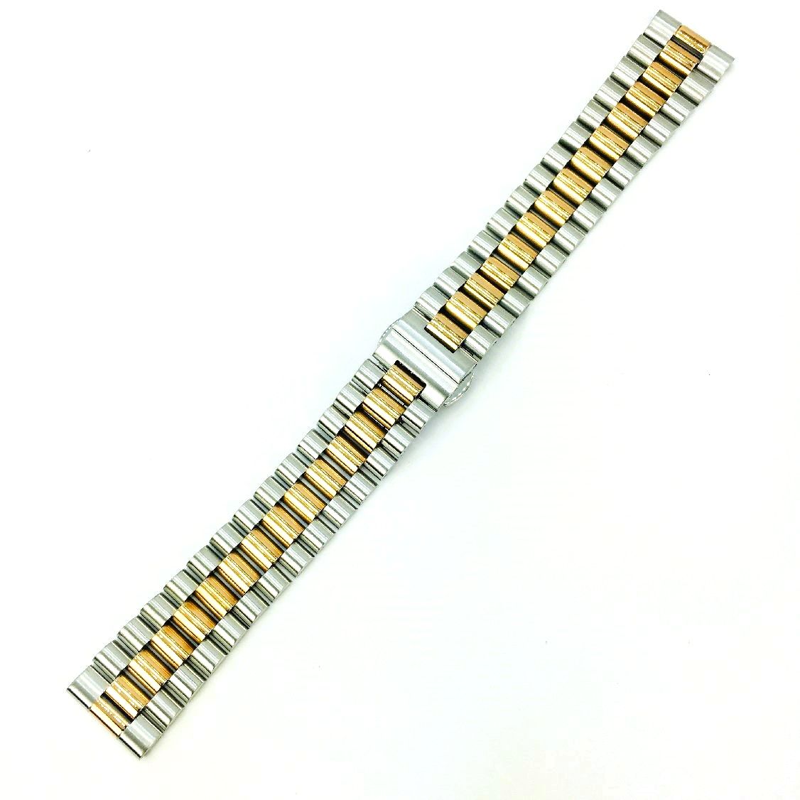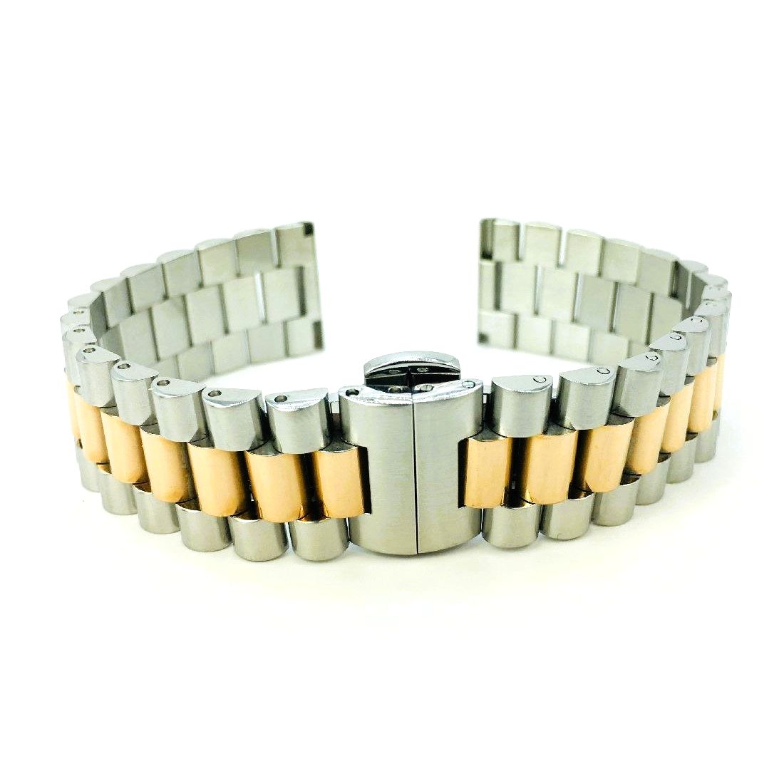 Victorinox Swiss Army Compatible Two Tone Rose Gold Metal Steel President Style Replacement Quick Release and Curved End Watch Band #7056